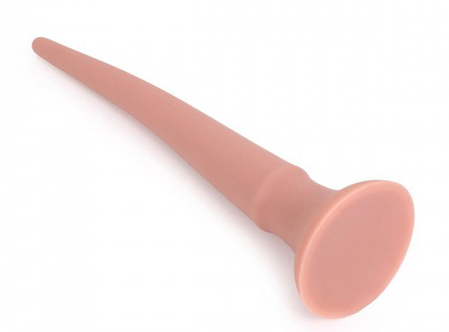 Dildoen starter smått og går gradvis utover, den er fast men fortsatt myk og fleksibel.