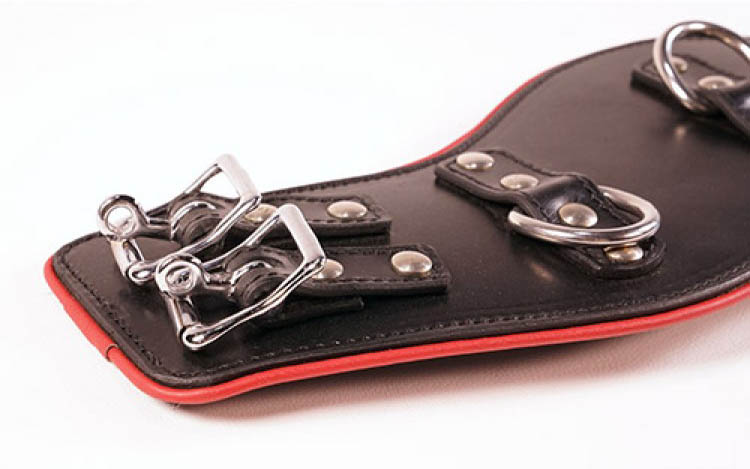 Det er også tre D-ringer på collaret for feste av bånd, cuffs osv.
