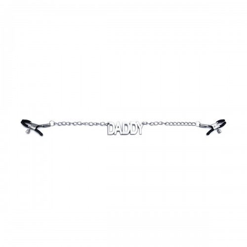 Klassiske justerbare klyper med kjetting, mellom klyperne står teksten DADDY.