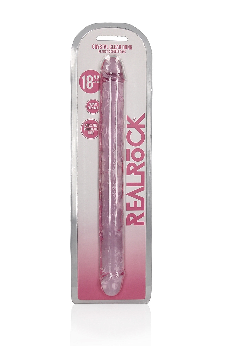 Realrock – Crystal Clear – Realistisk Dobbeldildo – Rosa - 45 cm