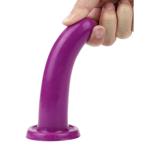 Dildoen har en lett bøy for å treffe g-punkt eller prostata.