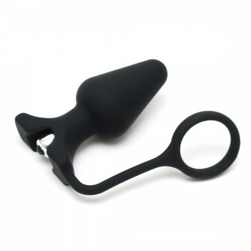 Buttplugg i mykt og glatt silikon med vibrator og penisring.