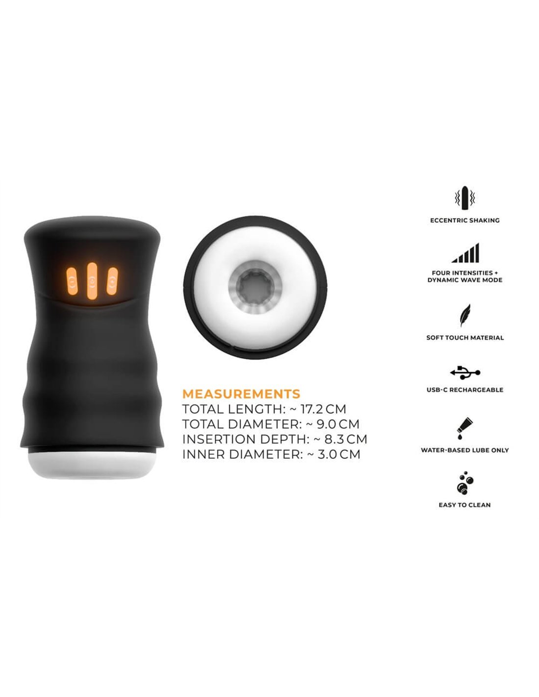 Denne Gyro Masturbatoren er kompakt, stilren og har en kraftig gyro-motor som både roterer og rister for maksimal penis-massasje.