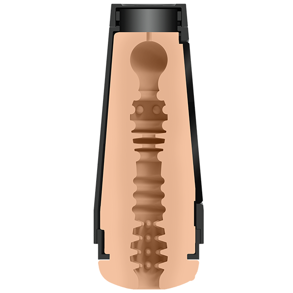 Denne masturbatoren har et delvis åpent punkt på siden hvor du kan klemme inn for å få en trangere følelse.