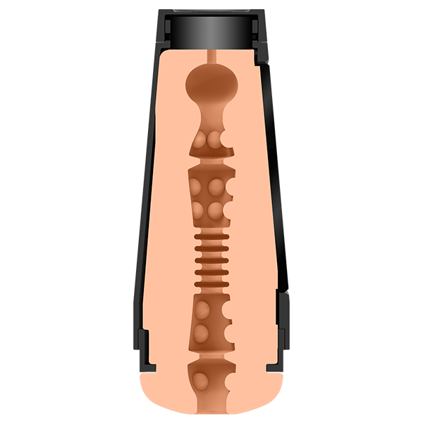 Denne masturbatoren har et delvis åpent punkt på siden hvor du kan klemme inn for å få en trangere følelse.