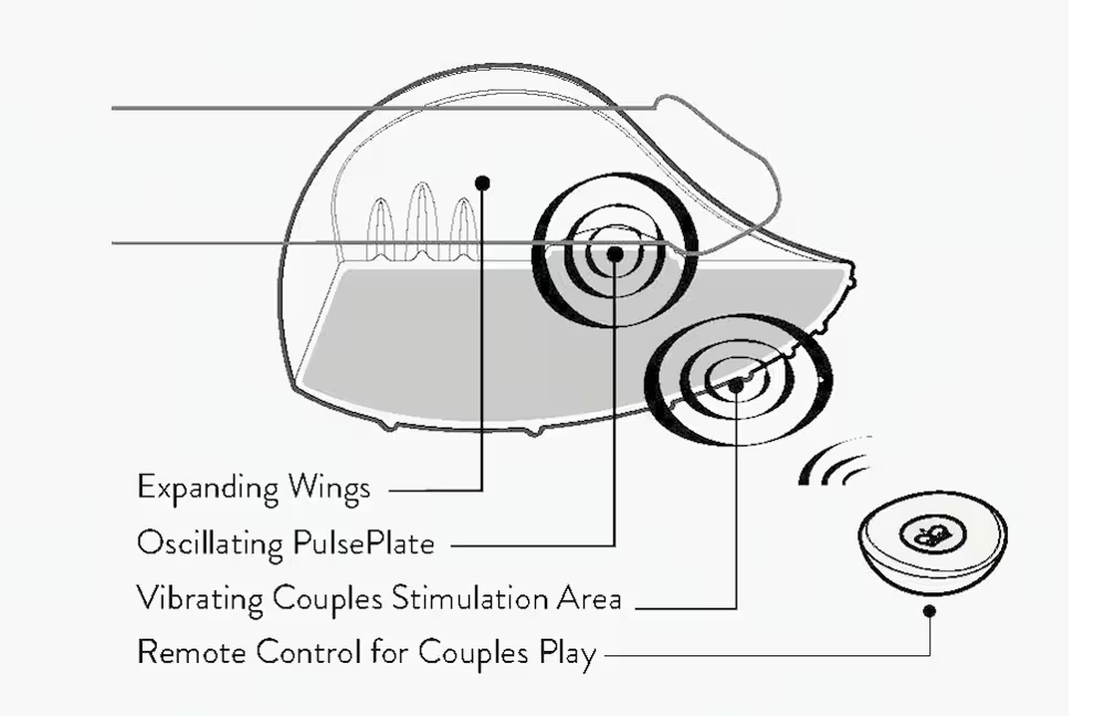 De silkemyke silikonvingene omslutter penis og stimulerer direkte på det følsomme frenulum med dyptgående, lavfrekvente pulser gjennom pulseplate teknologien helt handsfree og selv uten ereksjon.