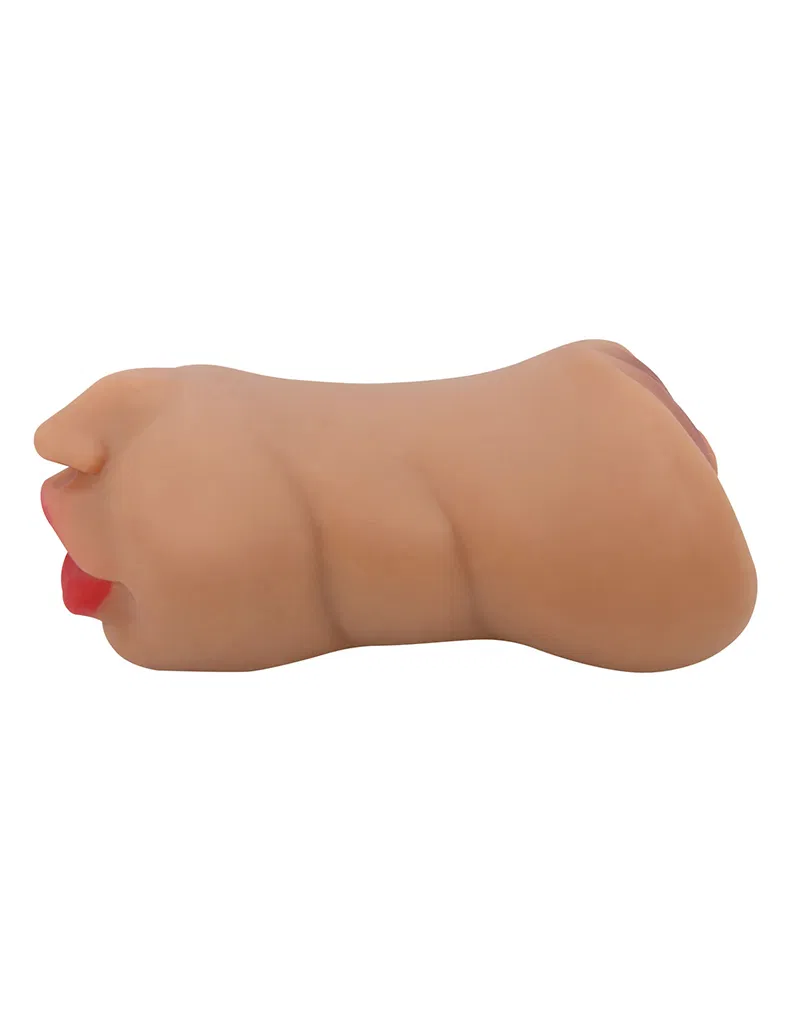 Realistisk og kraftig masturbator med to innganger og et tett, strukturert indre for maksimal stimulering.