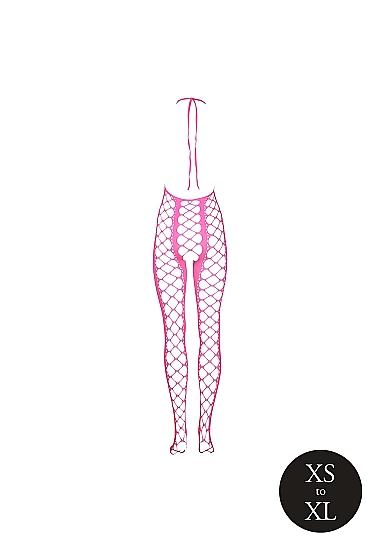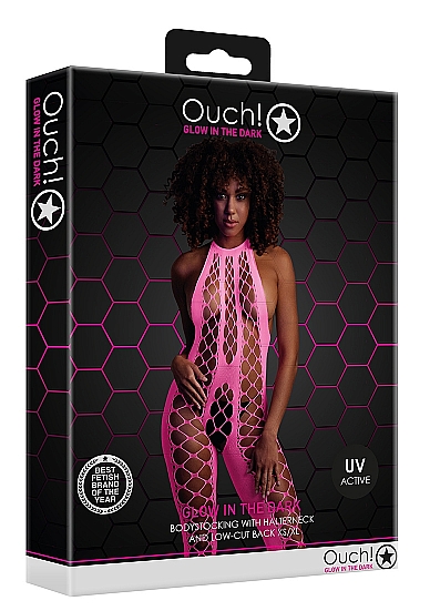 OUCH! - Glow in the dark - Bodystocking med Halterneck- Rosa XS/XL