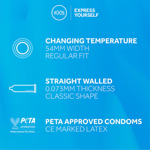 Kondomene er smurt med EXS sitt eget kjølende glidemiddel, som gir ekstra intimitet til din partner.