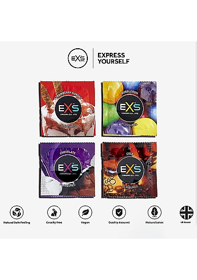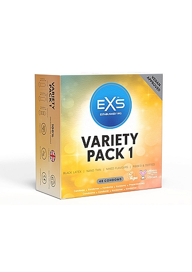Det er ikke enkelt å velge kondomer, det er da denne pakken kommer inn, pakken inneholder en variasjon av kondomer, 48 kondomer fordelt på tynne, fargede, nupper, riller og kondomer med smak.