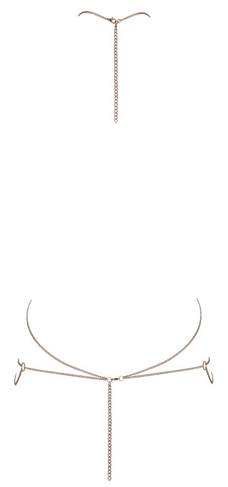 Kroppssmykket har må detaljer og ringer for ekstra blikkfang, og kan enkelt justeres i nakken og over baken med karabin låser.