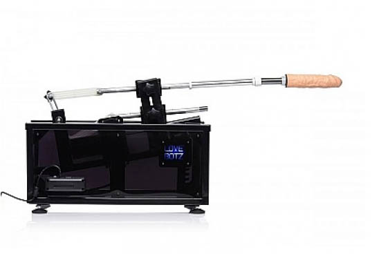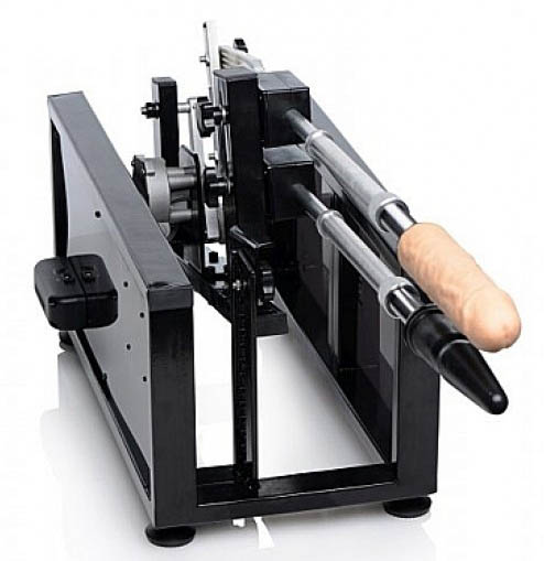Den kan justeres opp til 26 grader. Du kan også justere hvor langt ut du vil at dildoen og buttplugen skal være.