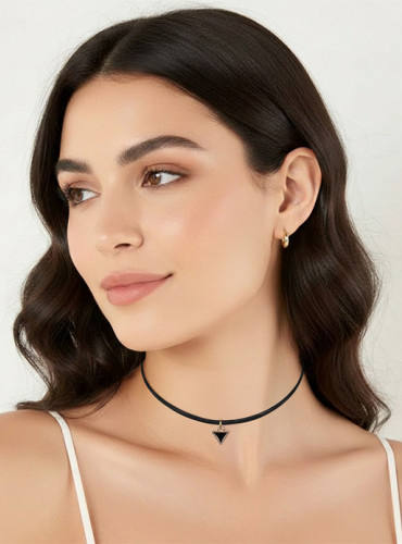 Chokeren er justerbar med en forlengelseskjede i sølvfarge, slik at du enkelt kan tilpasse passformen til halsen din. Det lette, myke materialet gjør den behagelig å bruke selv over lengre tid, mens designet gir en subtil men tydelig kontrast til huden.