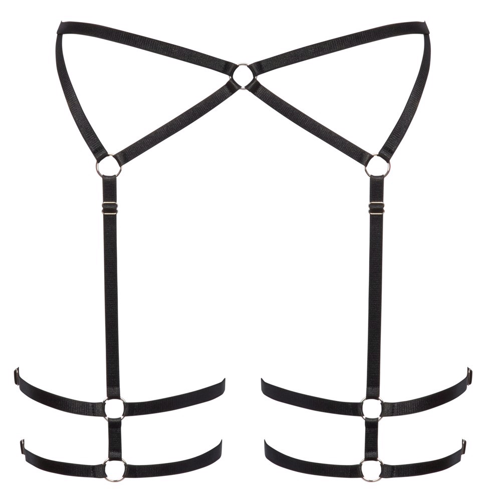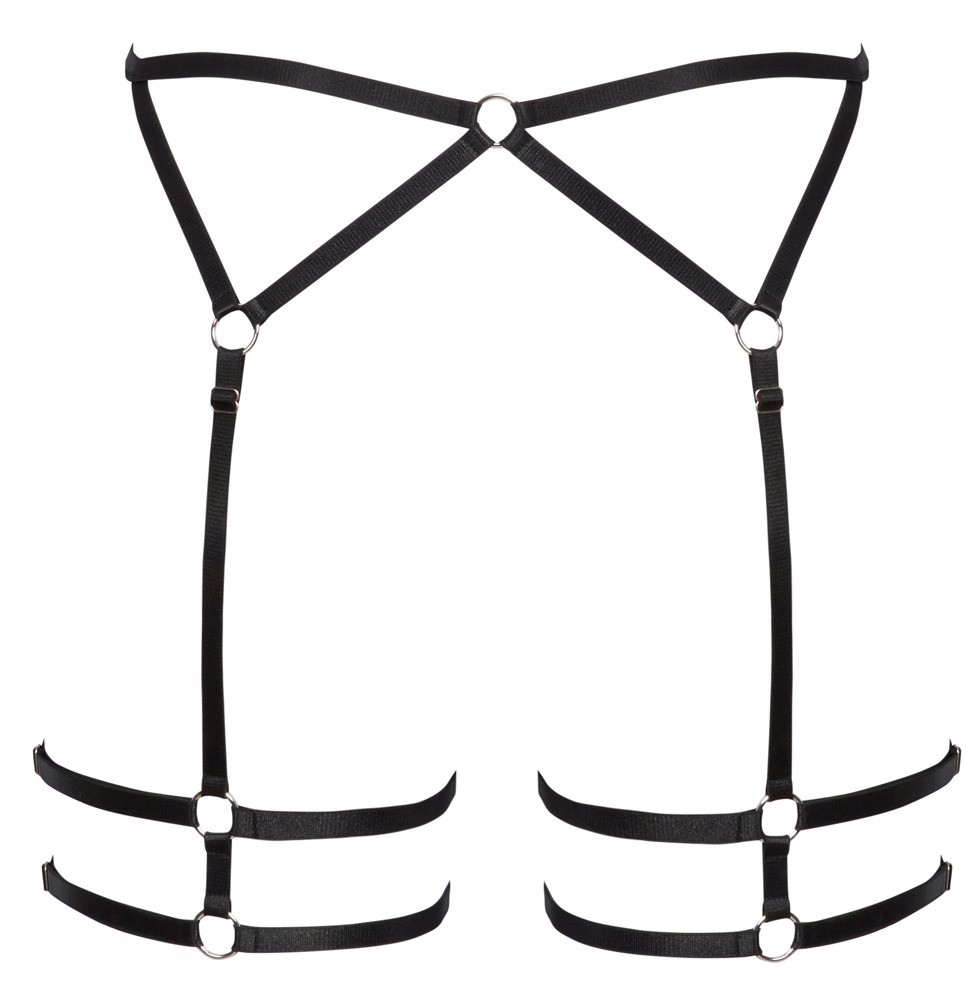 Svart harness som gir ekstra sanselig blikkfant til hofte, lår og underliv.