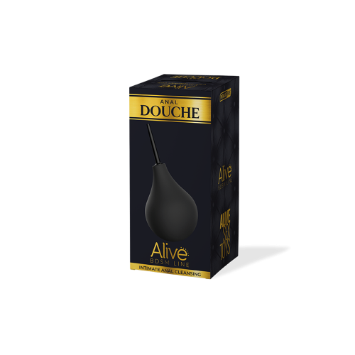 En sort ballpumpe av gummi med en klysterkanal.
