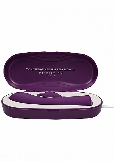 Discretion kommer med en elegant oppbevaringsboks med ladeuttak, som gjør det enkelt å oppbevare den samtidig som du alltid har en fulladet vibrator tilgjengelig!