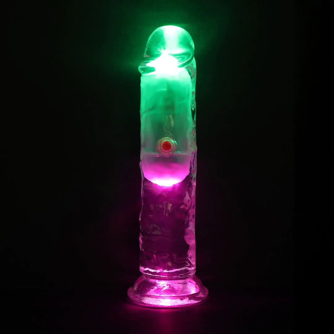 Vibratoren har også en egen knapp for lys, trykk på den og nyt lysshowet fullt ut.