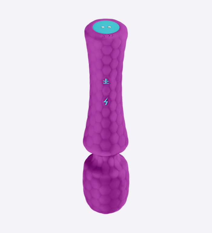 Den sekskantede teksturen av førsteklasses, silkemyk silikon eksklusivt for FemmeFunn bidrar til nytelsen og føles magisk mot huden. Teksturen hjelper også glidemiddel å vare lengre på staven. Den magnetiske USB-ladingen gjør den 100 % vanntett og lett å nyte hvor som helst.