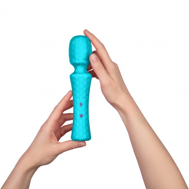 Den sekskantede teksturen av førsteklasses, silkemyk silikon eksklusivt for FemmeFunn bidrar til nytelsen og føles magisk mot huden. Teksturen hjelper også glidemiddel å vare lengre på staven. Den magnetiske USB-ladingen gjør den 100 % vanntett og lett å nyte hvor som helst.