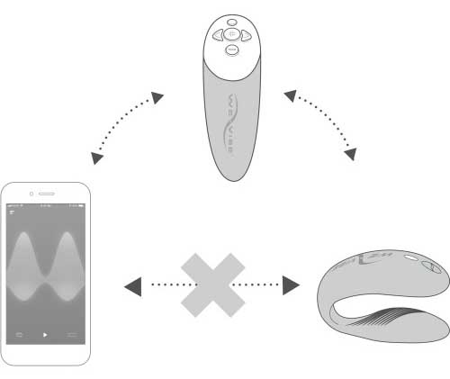 Kontrollere hverandres we-vibe produkter, bruke musikkmodus eller real-time touch kontroll!