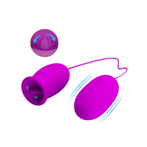 Selve oralsexstimulatoren har en myk, slikkende tunge av tynt silikon som vil stimulere oralsex - men denne går aldri lei og holder det tempoet du liker! I den andre enden finner du et kraftig vibrerende egg som er perfekt for innvendig stimulering. Nyt begge stimulatorene på samme tid, eller hver for seg!