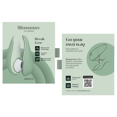 Den forbedrede Womanizer Liberty 2 gir deg friheten til å utforske dine indre ønsker på en unik måte. Utstyrt med den revolusjonerende Pleasure Air Technology, skaper den en berøringsfri sugende følelse som stimulerer klitoris på en uforglemmelig måte. Den presise og justerbare intensitetskontrollen gir deg full kontroll over din egen opplevelse, slik at du kan tilpasse den etter dine preferanser og humør. Velg mellom hele 8 forskjellige rene intensiteter.