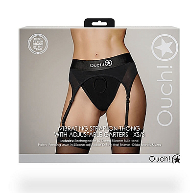 Ouch! Vibrating Strap-on Thong med Strømpebånd - XS/S