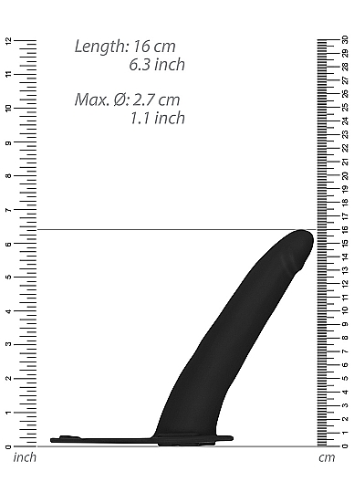 Selve dildoen er myk og fleksibel, og leveres med et trepunkts festesystem med trykknapper som holder den på plass.