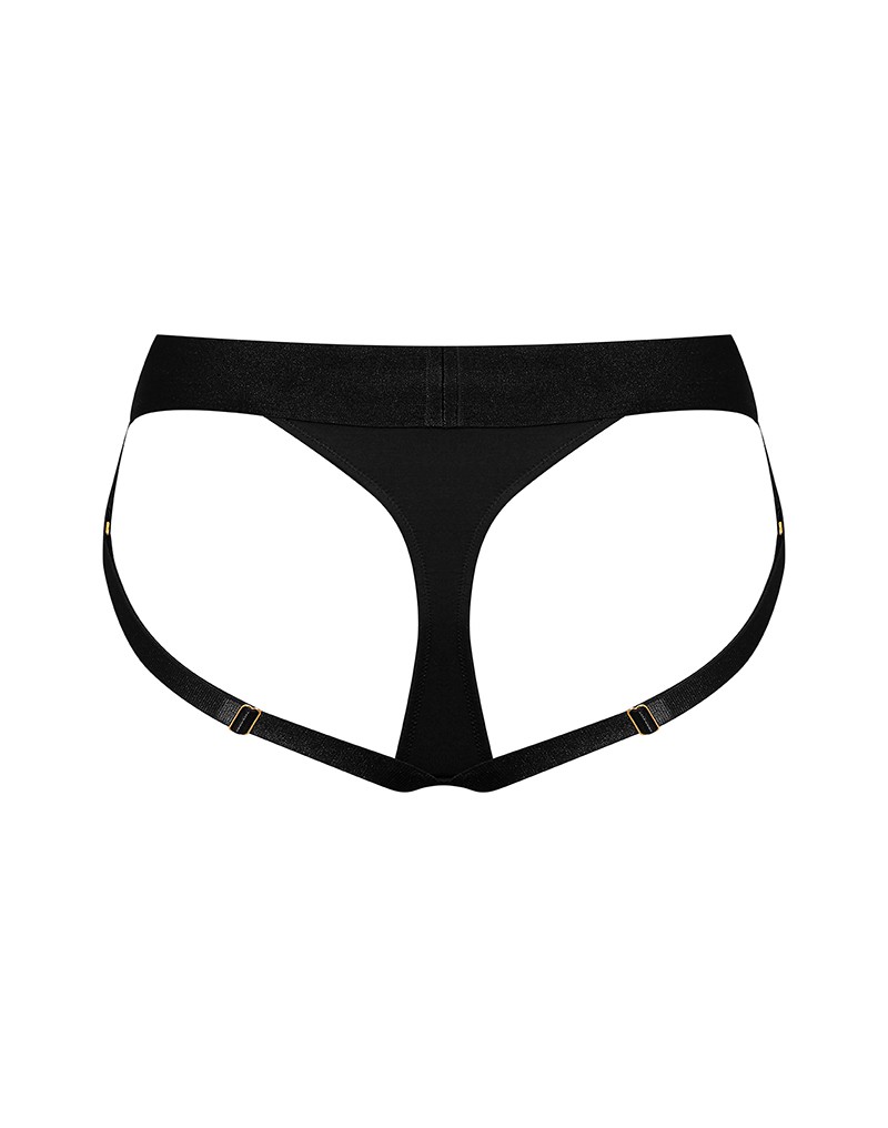 Heroine Harness har et enkelt og behagelig design med elastisk midjebelte. Forfra kan den minne om en enkel truse, men bakfra blir Heroine Harness til et elegant og sexy undertøy med justerbare stropper.