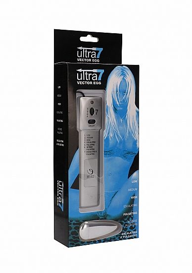 Ultra 7 er et vibrerende egg med fjernkontroll. Egget og fjernkontrollen er koblet sammen med ledning.